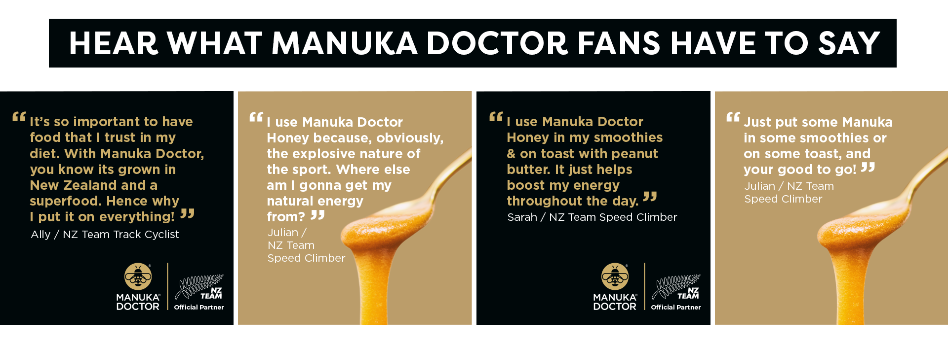 “Manuka Doctor’s honey is my everyday natural energy source and a key part of my training nutrition,” says David. David joins the family of Manuka Doctor sponsorships of NZ Breakers, Joseph Parker & the NZ Olympic Team. David has everything. He’s got the talent, the charisma and the X-factor of a true champion.
